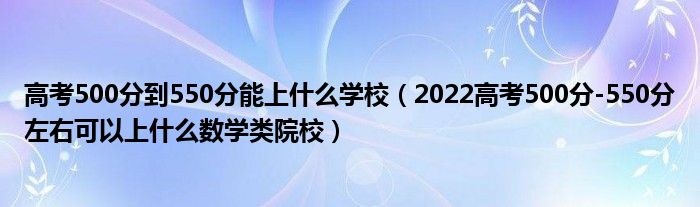 大家好,小高來為大家解答以上問題。高考500分到550分能上什么學校,2022高考500分-550分左右可以上什么數學類院校很多人還不知道,現在讓我們一起來看看吧!