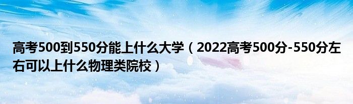 大家好,小高來(lái)為大家解答以上問題。高考500到550分能上什么大學(xué),2022高考500分-550分左右可以上什么物理類院校很多人還不知道,現(xiàn)在讓我們一起來(lái)看看吧!