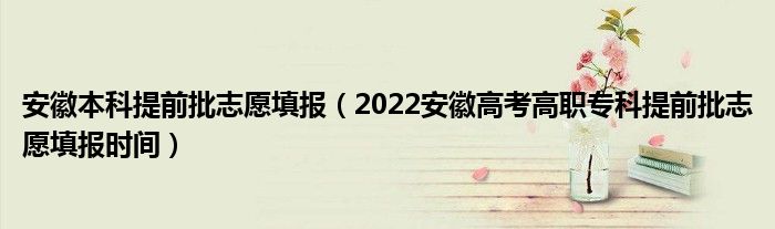 大家好,小高來(lái)為大家解答以上問(wèn)題。安徽本科提前批志愿填報(bào),2022安徽高考高職??铺崆芭驹柑顖?bào)時(shí)間很多人還不知道,現(xiàn)在讓我們一起來(lái)看看吧!