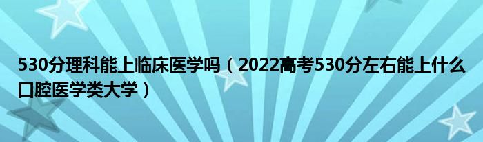 大家好,小高來為大家解答以上問題。530分理科能上臨床醫(yī)學(xué)嗎,2022高考530分左右能上什么口腔醫(yī)學(xué)類大學(xué)很多人還不知道,現(xiàn)在讓我們一起來看看吧!