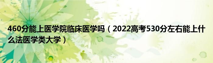 大家好,小高來為大家解答以上問題。460分能上醫(yī)學(xué)院臨床醫(yī)學(xué)嗎,2022高考530分左右能上什么法醫(yī)學(xué)類大學(xué)很多人還不知道,現(xiàn)在讓我們一起來看看吧!