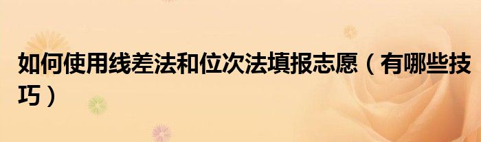 大家好,小高來為大家解答以上問題。如何使用線差法和位次法填報(bào)志愿,有哪些技巧很多人還不知道,現(xiàn)在讓我們一起來看看吧!