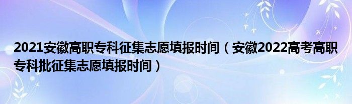 大家好,小高來為大家解答以上問題。2021安徽高職??普骷驹柑顖?bào)時(shí)間,安徽2022高考高職專科批征集志愿填報(bào)時(shí)間很多人還不知道,現(xiàn)在讓我們一起來看看吧!