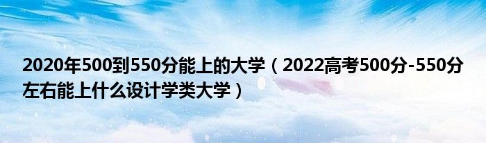 大家好,小高來為大家解答以上問題。2020年500到550分能上的大學(xué),2022高考500分-550分左右能上什么設(shè)計學(xué)類大學(xué)很多人還不知道,現(xiàn)在讓我們一起來看看吧!