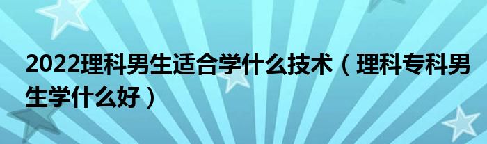 大家好,小高來為大家解答以上問題。2022理科男生適合學(xué)什么技術(shù),理科??颇猩鷮W(xué)什么好很多人還不知道,現(xiàn)在讓我們一起來看看吧!