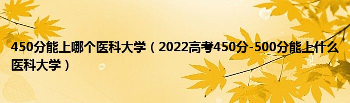 大家好,小高來(lái)為大家解答以上問(wèn)題。450分能上哪個(gè)醫(yī)科大學(xué),2022高考450分-500分能上什么醫(yī)科大學(xué)很多人還不知道,現(xiàn)在讓我們一起來(lái)看看吧!