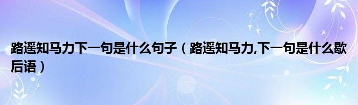 大家好,小高來為大家解答以上問題。路遙知馬力下一句是什么句子,路遙知馬力,下一句是什么歇后語很多人還不知道,現(xiàn)在讓我們一起來看看吧!