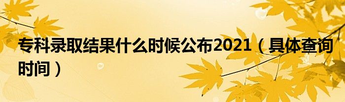 大家好,小高來為大家解答以上問題。專科錄取結(jié)果什么時(shí)候公布2021,具體查詢時(shí)間很多人還不知道,現(xiàn)在讓我們一起來看看吧!