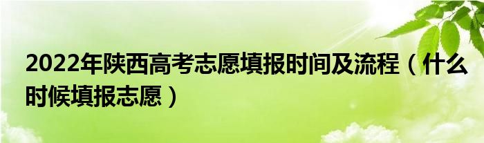 大家好,小高來為大家解答以上問題。2022年陜西高考志愿填報時間及流程,什么時候填報志愿很多人還不知道,現(xiàn)在讓我們一起來看看吧!