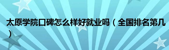 大家好,小高來為大家解答以上問題。太原學院口碑怎么樣好就業(yè)嗎,全國排名第幾很多人還不知道,現(xiàn)在讓我們一起來看看吧!