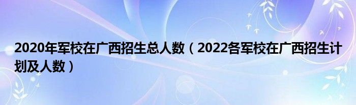大家好,小高來為大家解答以上問題。2020年軍校在廣西招生總?cè)藬?shù),2022各軍校在廣西招生計(jì)劃及人數(shù)很多人還不知道,現(xiàn)在讓我們一起來看看吧!