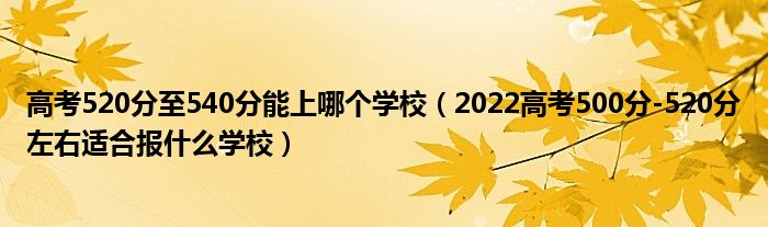 大家好,小高來為大家解答以上問題。高考520分至540分能上哪個學校,2022高考500分-520分左右適合報什么學校很多人還不知道,現(xiàn)在讓我們一起來看看吧!