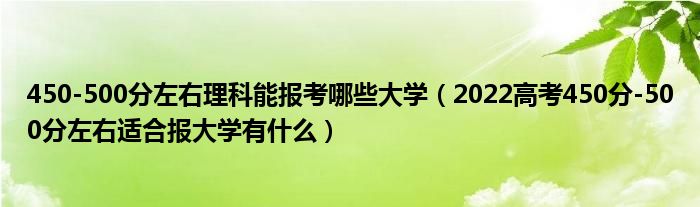 大家好,小高來(lái)為大家解答以上問(wèn)題。450-500分左右理科能報(bào)考哪些大學(xué),2022高考450分-500分左右適合報(bào)大學(xué)有什么很多人還不知道,現(xiàn)在讓我們一起來(lái)看看吧!