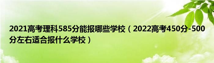 大家好,小高來為大家解答以上問題。2021高考理科585分能報哪些學(xué)校,2022高考450分-500分左右適合報什么學(xué)校很多人還不知道,現(xiàn)在讓我們一起來看看吧!