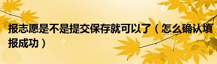 大家好,小高來為大家解答以上問題。報志愿是不是提交保存就可以了,怎么確認填報成功很多人還不知道,現(xiàn)在讓我們一起來看看吧!