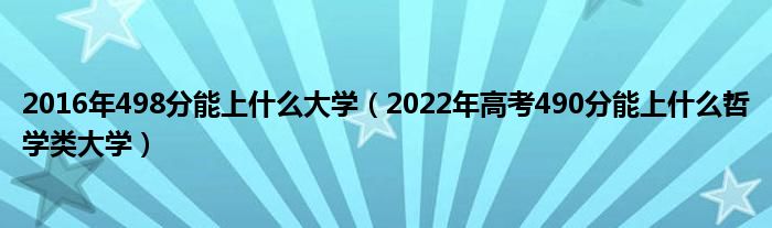 大家好,小高來為大家解答以上問題。2016年498分能上什么大學(xué),2022年高考490分能上什么哲學(xué)類大學(xué)很多人還不知道,現(xiàn)在讓我們一起來看看吧!