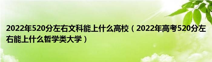 大家好,小高來為大家解答以上問題。2022年520分左右文科能上什么高校,2022年高考520分左右能上什么哲學(xué)類大學(xué)很多人還不知道,現(xiàn)在讓我們一起來看看吧!