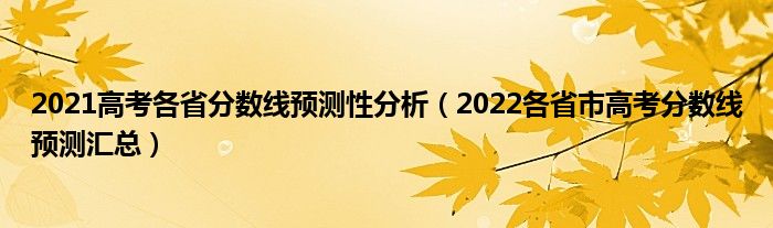 大家好,小高來為大家解答以上問題。2021高考各省分?jǐn)?shù)線預(yù)測性分析,2022各省市高考分?jǐn)?shù)線預(yù)測匯總很多人還不知道,現(xiàn)在讓我們一起來看看吧!