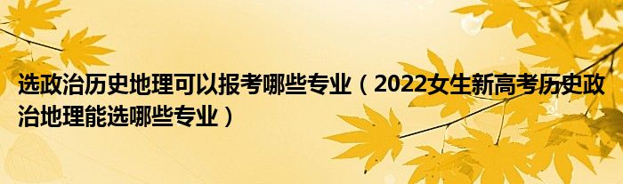 大家好,小高來為大家解答以上問題。選政治歷史地理可以報考哪些專業(yè),2022女生新高考歷史政治地理能選哪些專業(yè)很多人還不知道,現(xiàn)在讓我們一起來看看吧!