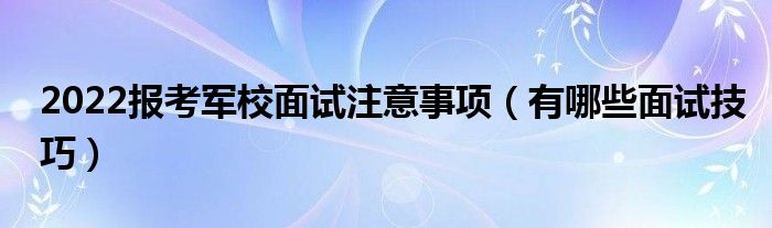 大家好,小高來為大家解答以上問題。2022報(bào)考軍校面試注意事項(xiàng),有哪些面試技巧很多人還不知道,現(xiàn)在讓我們一起來看看吧!