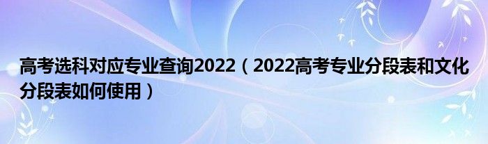 大家好,小高來為大家解答以上問題。高考選科對應(yīng)專業(yè)查詢2022,2022高考專業(yè)分段表和文化分段表如何使用很多人還不知道,現(xiàn)在讓我們一起來看看吧!