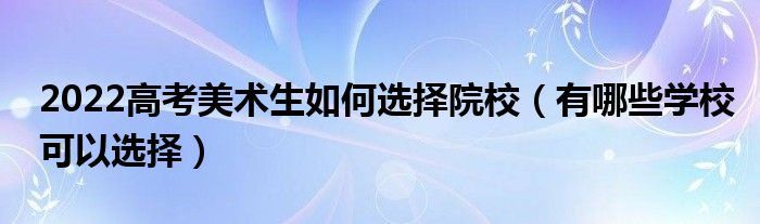 大家好,小高來為大家解答以上問題。2022高考美術(shù)生如何選擇院校,有哪些學(xué)校可以選擇很多人還不知道,現(xiàn)在讓我們一起來看看吧!