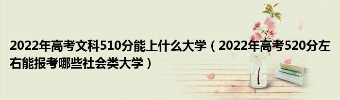 大家好,小高來為大家解答以上問題。2022年高考文科510分能上什么大學(xué),2022年高考520分左右能報考哪些社會類大學(xué)很多人還不知道,現(xiàn)在讓我們一起來看看吧!