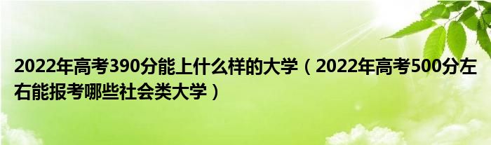 大家好,小高來為大家解答以上問題。2022年高考390分能上什么樣的大學(xué),2022年高考500分左右能報(bào)考哪些社會(huì)類大學(xué)很多人還不知道,現(xiàn)在讓我們一起來看看吧!