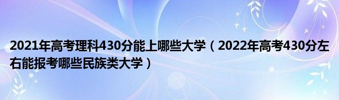 大家好,小高來為大家解答以上問題。2021年高考理科430分能上哪些大學,2022年高考430分左右能報考哪些民族類大學很多人還不知道,現(xiàn)在讓我們一起來看看吧!