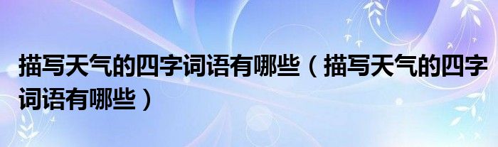 大家好,小高來為大家解答以上問題。描寫天氣的四字詞語有哪些,描寫天氣的四字詞語有哪些很多人還不知道,現(xiàn)在讓我們一起來看看吧!