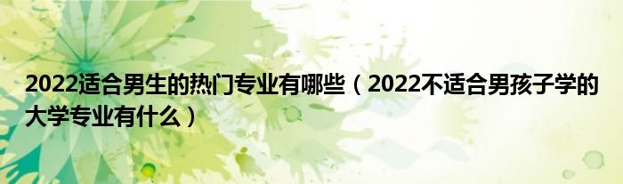 大家好,小高來為大家解答以上問題。2022適合男生的熱門專業(yè)有哪些,2022不適合男孩子學(xué)的大學(xué)專業(yè)有什么很多人還不知道,現(xiàn)在讓我們一起來看看吧!