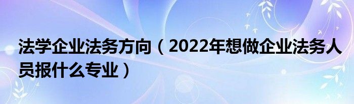 大家好,小高來為大家解答以上問題。法學(xué)企業(yè)法務(wù)方向,2022年想做企業(yè)法務(wù)人員報(bào)什么專業(yè)很多人還不知道,現(xiàn)在讓我們一起來看看吧!