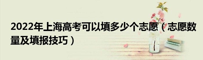 大家好,小高來(lái)為大家解答以上問(wèn)題。2022年上海高考可以填多少個(gè)志愿,志愿數(shù)量及填報(bào)技巧很多人還不知道,現(xiàn)在讓我們一起來(lái)看看吧!