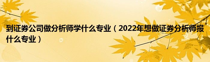 大家好,小高來為大家解答以上問題。到證券公司做分析師學(xué)什么專業(yè),2022年想做證券分析師報什么專業(yè)很多人還不知道,現(xiàn)在讓我們一起來看看吧!
