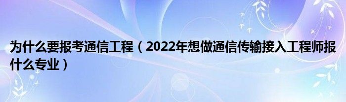 大家好,小高來為大家解答以上問題。為什么要報(bào)考通信工程,2022年想做通信傳輸接入工程師報(bào)什么專業(yè)很多人還不知道,現(xiàn)在讓我們一起來看看吧!