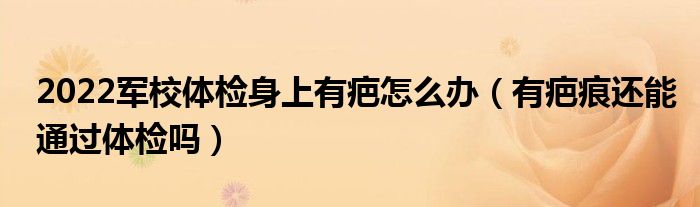 大家好,小高來(lái)為大家解答以上問(wèn)題。2022軍校體檢身上有疤怎么辦,有疤痕還能通過(guò)體檢嗎很多人還不知道,現(xiàn)在讓我們一起來(lái)看看吧!