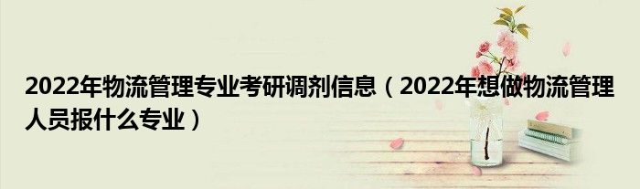 大家好,小高來為大家解答以上問題。2022年物流管理專業(yè)考研調(diào)劑信息,2022年想做物流管理人員報什么專業(yè)很多人還不知道,現(xiàn)在讓我們一起來看看吧!