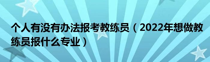 大家好,小高來為大家解答以上問題。個人有沒有辦法報考教練員,2022年想做教練員報什么專業(yè)很多人還不知道,現(xiàn)在讓我們一起來看看吧!