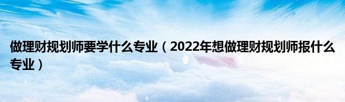大家好,小高來為大家解答以上問題。做理財規(guī)劃師要學什么專業(yè),2022年想做理財規(guī)劃師報什么專業(yè)很多人還不知道,現(xiàn)在讓我們一起來看看吧!