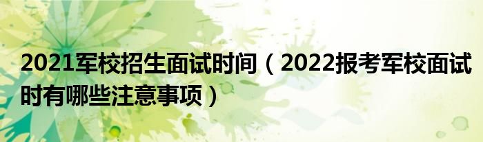大家好,小高來(lái)為大家解答以上問(wèn)題。2021軍校招生面試時(shí)間,2022報(bào)考軍校面試時(shí)有哪些注意事項(xiàng)很多人還不知道,現(xiàn)在讓我們一起來(lái)看看吧!