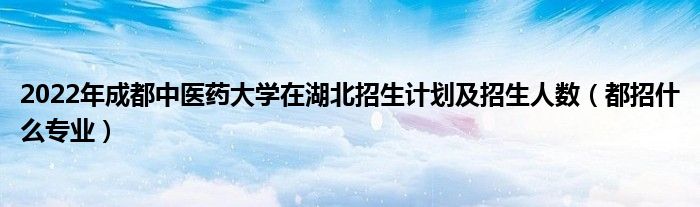 大家好,小高來(lái)為大家解答以上問(wèn)題。2022年成都中醫(yī)藥大學(xué)在湖北招生計(jì)劃及招生人數(shù),都招什么專業(yè)很多人還不知道,現(xiàn)在讓我們一起來(lái)看看吧!