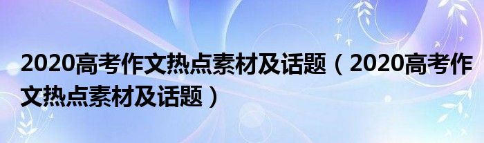大家好,小高來為大家解答以上問題。2020高考作文熱點素材及話題,2020高考作文熱點素材及話題很多人還不知道,現(xiàn)在讓我們一起來看看吧!