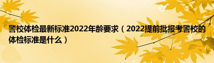 大家好,小高來(lái)為大家解答以上問(wèn)題。警校體檢最新標(biāo)準(zhǔn)2022年齡要求,2022提前批報(bào)考警校的體檢標(biāo)準(zhǔn)是什么很多人還不知道,現(xiàn)在讓我們一起來(lái)看看吧!