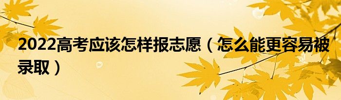 大家好,小高來為大家解答以上問題。2022高考應該怎樣報志愿,怎么能更容易被錄取很多人還不知道,現(xiàn)在讓我們一起來看看吧!