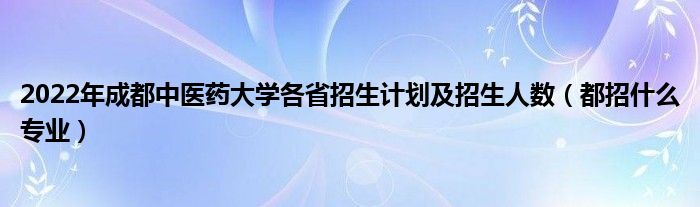 大家好,小高來為大家解答以上問題。2022年成都中醫(yī)藥大學(xué)各省招生計劃及招生人數(shù),都招什么專業(yè)很多人還不知道,現(xiàn)在讓我們一起來看看吧!