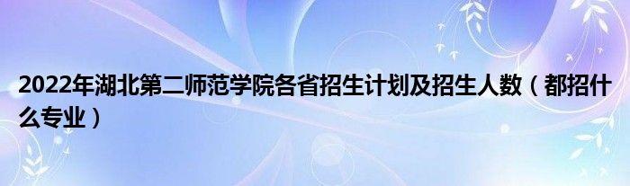 大家好,小高來為大家解答以上問題。2022年湖北第二師范學院各省招生計劃及招生人數(shù),都招什么專業(yè)很多人還不知道,現(xiàn)在讓我們一起來看看吧!