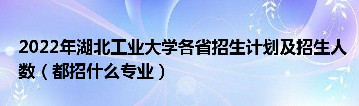 大家好,小高來為大家解答以上問題。2022年湖北工業(yè)大學(xué)各省招生計(jì)劃及招生人數(shù),都招什么專業(yè)很多人還不知道,現(xiàn)在讓我們一起來看看吧!
