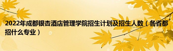 大家好,小高來為大家解答以上問題。2022年成都銀杏酒店管理學(xué)院招生計(jì)劃及招生人數(shù),各省都招什么專業(yè)很多人還不知道,現(xiàn)在讓我們一起來看看吧!