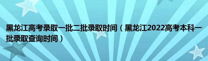 大家好,小高來(lái)為大家解答以上問(wèn)題。黑龍江高考錄取一批二批錄取時(shí)間,黑龍江2022高考本科一批錄取查詢時(shí)間很多人還不知道,現(xiàn)在讓我們一起來(lái)看看吧!
