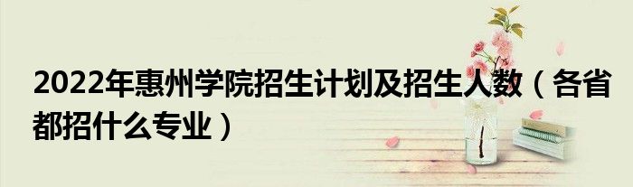大家好,小高來為大家解答以上問題。2022年惠州學院招生計劃及招生人數(shù),各省都招什么專業(yè)很多人還不知道,現(xiàn)在讓我們一起來看看吧!